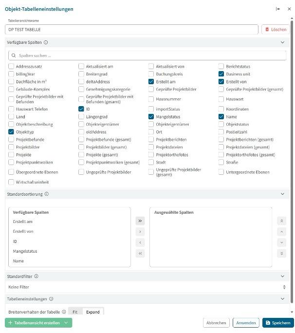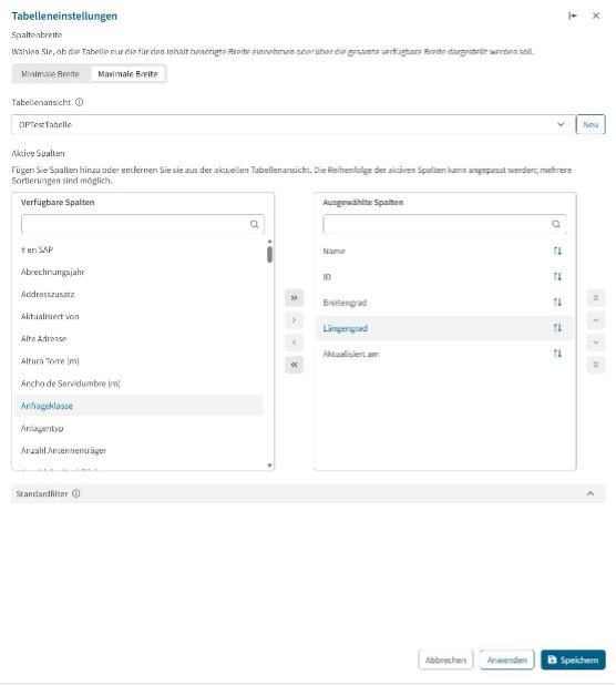 – Ausgewählte Spalten & Standardsortierung zusammengefasst – Spaltenauswahl und Sortierung sind nun in einem einheitlichen, übersichtlicheren Panel zusammengeführt