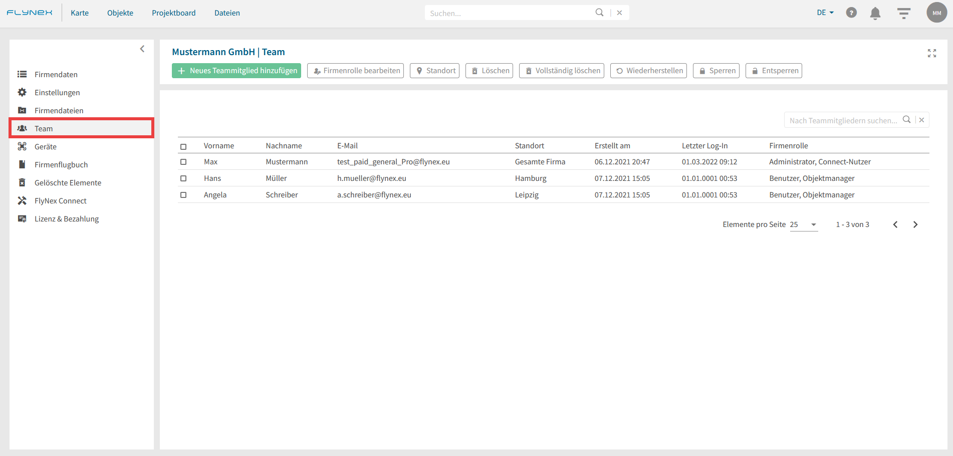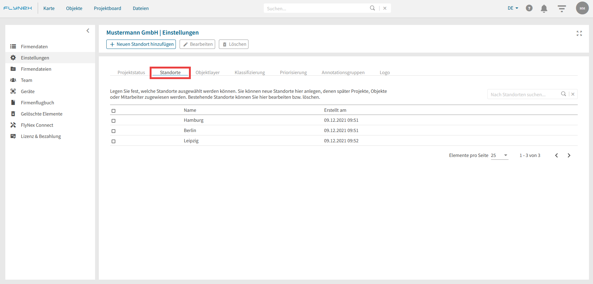 Standorte: Anpassung der Standorte der Firma für Teammitglieder in Team, z. B. Berlin, Hamburg, Leipzig